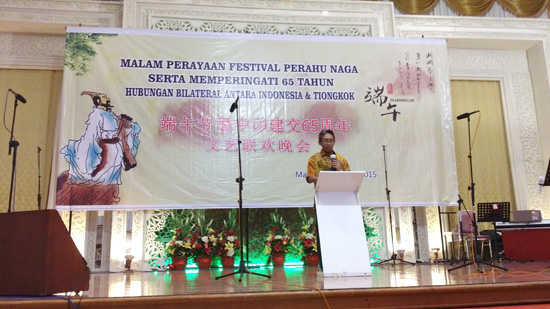 随后,哈山努丁大学副校长Budu教授致辞,他对哈山努丁大学孔子学院传播中国文化所作的努力给予了极大的肯定。他说,在远离祖国的印尼南苏拉威西省与印尼华人及孔院师生一起迎端午,共同感受中国的传统文化,令人倍感亲切。华人社团代表也在晚会上发表了热情洋溢的致辞,他们对孔子学院成立以来取得的成绩表示祝贺,会一如既往的支持哈山努丁大学孔子学院的建设和发展。
