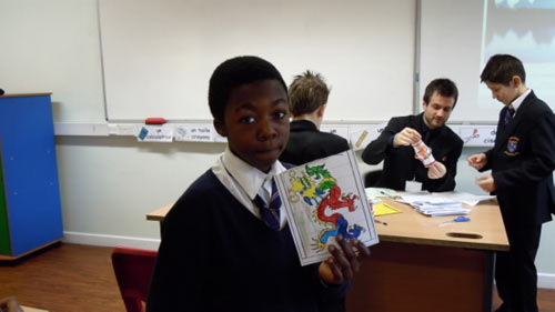 2月3日当地时间10点,伦敦金思福特中学7年级3班的学生在中文老师Mr Bensley的带领下欢欢喜喜地制作起了灯笼,并表达了他们的美好祝福。