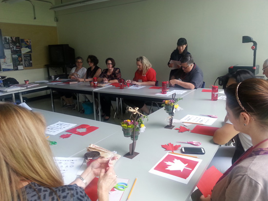 由孔院教师袁秀凤主持展示的“中国剪纸艺术坊”大受欢迎,参与者在一个小时内,不仅了解了中国剪纸文化,而且亲手制作了加拿大枫叶、中国喜字等剪纸作品。此外,由于报名者踊跃,孔院还举办了两场太极工作坊。由中方院长陈洪富主持的第一场,在对太极文化简介之后,让参与者体验了杨式太极拳、陈式太极拳 、华武太极扇的不同套路。由肖兴发博士主持的第二场太极工作坊也吸引了不少大学员工积极参与。