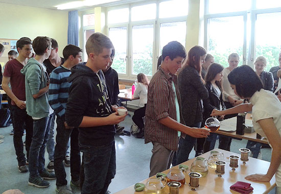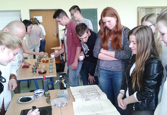 6月19日,杭州十竹斋艺术馆馆长魏立中和中国茶叶博物馆茶艺师蔡嘉嘉应德国纽伦堡-埃尔兰根孔子学院邀请,为埃尔兰根市Albert- Schweitzer中学的部分学生与教师举办木版水印体验和茶艺展示活动。
