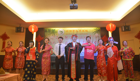 6月20日,泰国勿洞市孔子学院举办了“品粽思贤,情浓端午”晚会。勿洞市市长容志江夫妇、孔院荣誉理事长陈进森、孔院理事周昌江夫妇和江延凯夫妇、慈善堂理事长陈富祥以及各国、各界嘉宾约260人参加了晚会。