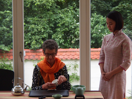 6月21日,正值夏至时节,来自纽伦堡地区的中华文化爱好者相聚在绿树环绕的纽伦堡-埃尔兰根孔子学院新办公大楼,体验茶艺和太极的魅力。