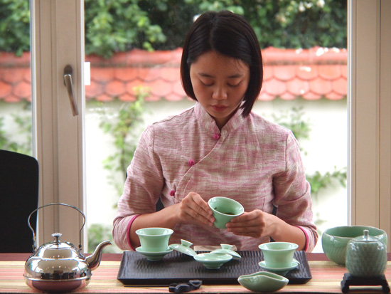 首先由杭州茶叶博物馆的茶艺师蔡嘉嘉女士向活动参与者展示了茶叶泡制的流程。在她的指导下,观众们纷纷亲自尝试,冲泡茶叶。随后,蔡女士介绍了中国五大名茶:绿茶、乌龙茶、红茶、白茶和普洱茶。观众们细细品尝了这五种茶,并在茶艺师的讲解下了解了这五种茶的特性。