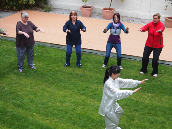 太极作为中国古老的武术之一,越来越受到世界各国人民的喜爱。在风景优美的孔院办公大楼庭院内,崔杨老师带领活动参与者学习太极的一招一式。学员们在缓慢的身体运动中用心体会太极天人合一的境界。在多次练习后,活动参与者们已能独立完成崔老师所教授的招式。
