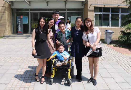 初夏六月,卡洛斯在母亲的陪伴下,坐着轮椅跟随麦德林市孔子学院夏令营,来到大连外国语大学校园。