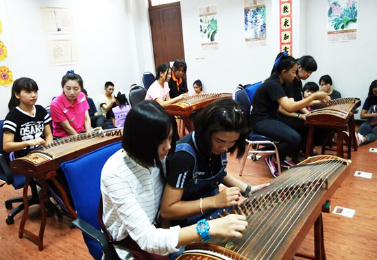 此次文化营突出中华才艺的学习,根据文化营学员的汉语水平,将90名学员分为三个班级,分别学习体验古筝、太极功夫扇和汉服表演。