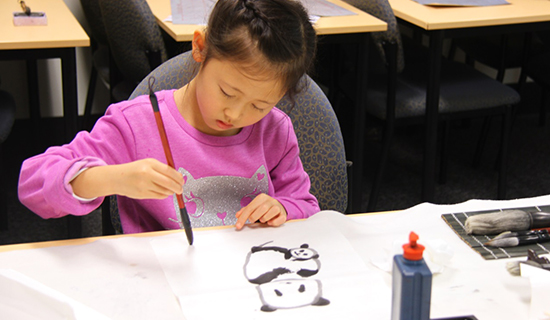 国画课上,孔院教师自己设计了熊猫和考拉的简笔画,几笔简单的勾勒,一只只呆萌的熊猫和考拉跃然纸上;配上水墨的晕染,学生们画出了姿态各异的熊猫和考拉。