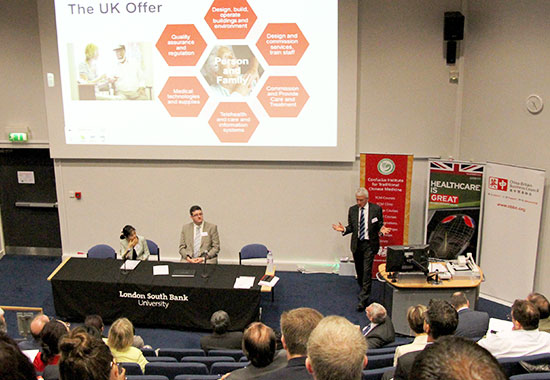 6月29日,由英国贸易投资总署和英中贸易协会主办,伦敦中医孔子学院协办的“中国医疗健康巡讲与资询会”伦敦站活动在伦敦南岸大学举行。来自英国贸易投资总署和英国医疗局的十几位医疗领域专家及几十家英国医疗企业代表参加巡讲。中国驻英国使馆经商处公使衔参赞金旭,英国驻华大使馆参赞高博恩受邀出席活动。