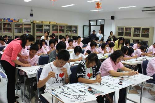 在为期两天的活动中,学生们体验了包括汉语会话、中国概况、中文歌曲、毛笔书法、太极拳、中国剪纸、中国结等近十项中国文化课程。在老师的带领下,学生们细心体会,积极参与,课堂气氛非常融洽。