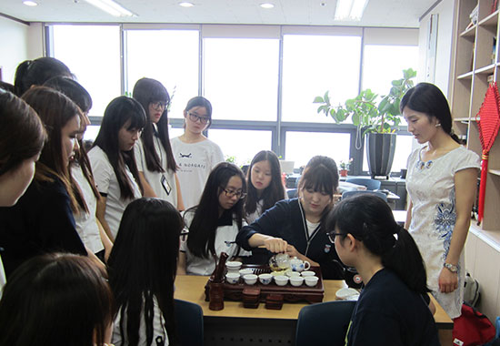 7月10日,韩国大真大学孔子学院举办中国文化体验活动,来自京畿道德亭高中的30余名高二学生前来参加。