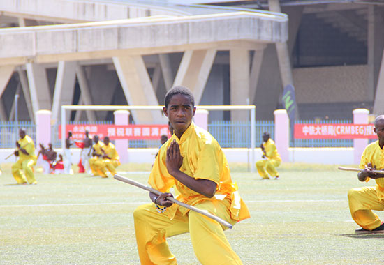 当地时间7月12日,由多多马大学孔子学院武术教师和百余名学生精心准备的大型武术节目“武动坦桑”在首届“周恩来杯”中坦足球友谊赛开幕式上精彩上演。坦桑尼亚体育部常务秘书长SIHABA NKINGA,中国驻坦桑尼亚大使馆政务参赞张飙、文化参赞刘东,以及坦桑尼亚中华总商会会长黄再胜出席活动。