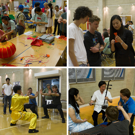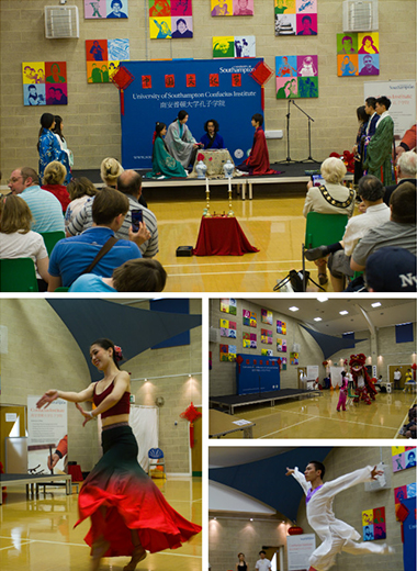 开幕式上,受邀前来助兴的伦敦史密斯金孔院和英伦汉风演出团队表演了舞狮、中国传统乐器、舞蹈、中国古代服饰等精彩节目,赢得热烈掌声。当天的活动还有汉语体验课、茶艺、书法、武术、剪纸、中国结、音乐与舞蹈以及试穿古代服饰等丰富多彩的文化活动。