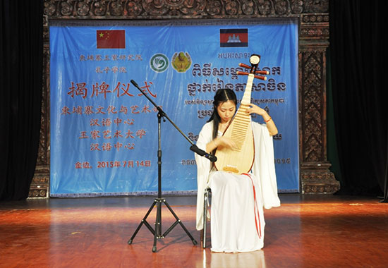 7月14日,柬埔寨王家研究院孔子学院文化与艺术部汉语中心和王家艺术大学汉语中心揭牌仪式同时在柬埔寨文化与艺术部礼堂进行。