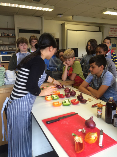 除此之外,此次活动还借用了学校的厨房,教授学生如何做中国菜,通过老师的细致的讲解和现场演示,然后学生分组进行操作,上演了一场真真切切的“舌尖上的中国”,他们不仅因为尝到了老师们做的真正的中国菜而开心,而且都为自己学会了做宫保鸡丁、番茄炒蛋、洋葱牛肉、彩椒土豆等家常而经典的中国菜而兴奋。最后一天,学生们还在学校举行集会,展示在中国文化活动周学习到的东西,大家都纷纷表示很有收获。