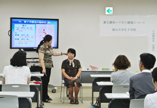 7月25日,日本福山大学孔子学院举办“穴位与养生”体验讲座,近30名当地民众和孔院学员参加。