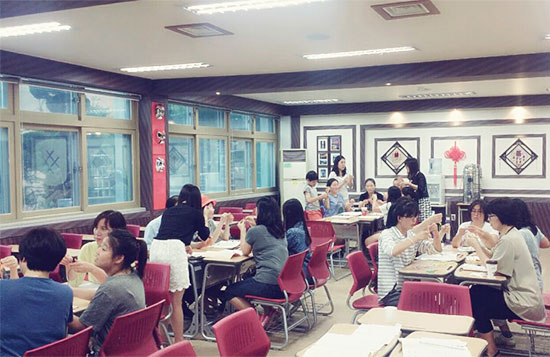 7月16日和22日,韩国泰成中高等学校孔子课堂志愿者韩梅、金爱玲、朴秋红、李芹为韩国学生及家长开展了两节生动有趣的中国结文化课。