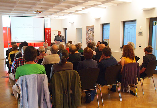 当地时间7月27日,德国纽伦堡-埃尔兰根孔子学院举办中国传统文化专题报告会,埃尔兰根大学汉学系教授朗宓榭应邀做了题为“中国传统文化中的孔子形象”的报告,30余位德国艺术家参加此次报告会。