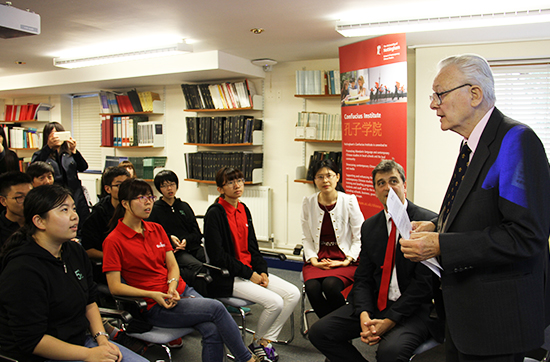 在孔子学院的精心安排下,状元团一行参观了诺丁汉大学核磁共振中心与经济学院,并与磁共振成像发明者、2003年诺贝尔医学奖得主彼得·曼斯菲尔德爵士亲切交流。曼斯菲尔德爵士讲述了磁共振成像的发明过程及前景。状元们十分珍惜与学界大师面对面的交流机会,提出不少有水平的问题,曼斯菲尔德爵士一一解答。虽然曼斯菲尔德爵士已有80多岁高龄,但仍治学不懈,其人格魅力和学养深深为同学们折服。