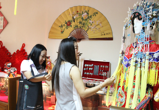 学生家长对京剧服饰爱不释手