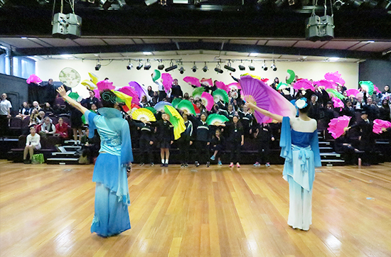 此外,墨尔本女子中学学生带来了精彩表演。在舞蹈《十二生肖》中,八年级学生跟随音乐一起唱出“子鼠、丑牛、寅虎……”,并在舞蹈中融入太极和中国功夫元素;十一年级学生Isadora Lauritz演唱了中文歌曲《小城故事》;十二年级的中国留学生李欣桐带来了剑舞,一席飘飘白衣佩剑,舞出古今中外情;从小在澳洲长大的中国女孩刘雨微,长在海外心系祖国,演奏了古筝《渔舟唱晚》,震惊四座。最后,八年级学生们跳起了火遍全球的广场舞《小苹果》,将节日气氛推向高潮。