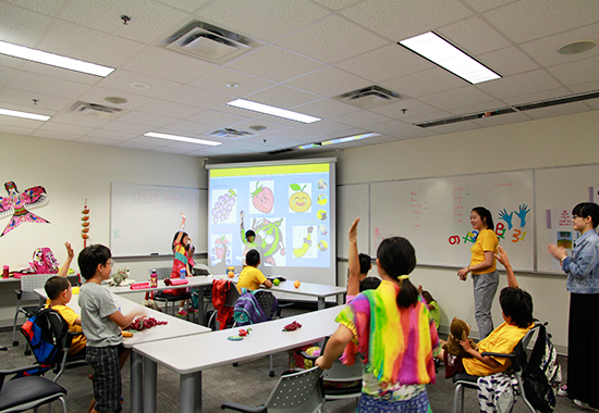 考虑到大部分孩子有一定的中文基础,孔子学院老师准备了全新的语言知识、手工以及互动游戏。在简单的复习之后孩子们可以流利的运用中文进行自我介绍,千位以内的数数,说出自己喜欢的颜色、水果、动物等等。此外,本次夏令营孔子学院增加了中国钱币历史和人民币的介绍,十以内的加减计算,如何进行货物买卖、讨价还价,在银行存钱、数钱的技巧,看动画,写汉字,十二生肖,中国传统乐器和服饰介绍,筷子的使用,制作粽子、风筝、叶子画等手工活动。