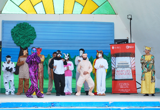 当地时间8月16日,秘鲁皮乌拉大学孔子学院携中国12生肖情景剧亮相皮乌拉第四届国际书展,百余名观众观看此次表演。
