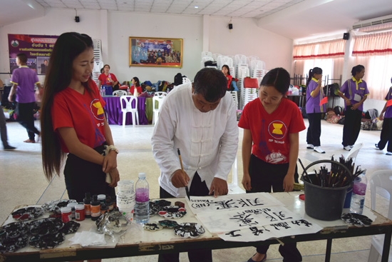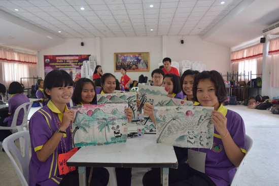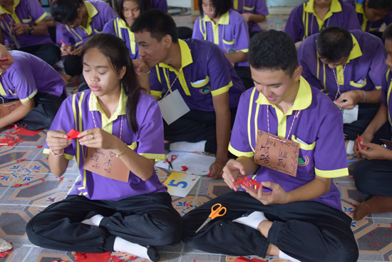 孔子学院为本期汉语训练营做了精心准备。为期两天的汉语训练营分为武术、中国画、中文歌曲、剪纸和中国结五个活动小组,每个小组的学生在学完本组内容后再轮转到其他小组学习。学习内容丰富多彩,趣味不断。出神入化的中国武术长棍、博大精深的中国水墨画艺术、活泼欢快的中文歌曲演唱以及魔术般的中国剪纸和中国结技艺等都深深地吸引了泰国学生,令他们大开眼界。