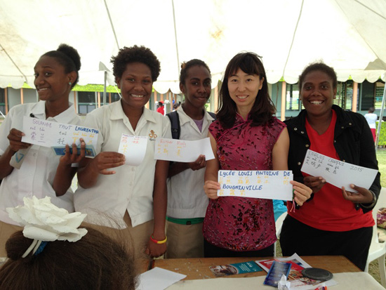 当地时间8月14日是斐济南太平洋大学瓦努阿图艾玛卢校区一年一度的开放日,南太平洋大学孔子学院下属瓦努阿图共和国孔子课堂举办了一系列文化体验活动:请Malapoa学校刚从中国回来的学生来交流、学说中国话、画京剧脸谱、品尝美食等。