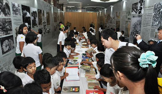 8月29日,为期3天的“祈祷世界和平,不忘历史教训——纪念反法西斯战争胜利70周年图片展”在缅甸曼德勒福庆学校孔子课堂举行,中国驻曼德勒总领事馆总领事王愚等嘉宾为图片展剪彩开幕,近500名各界人士前来参观。