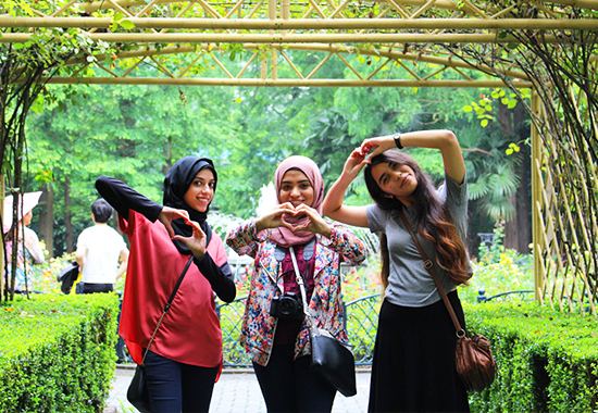 苏州园林甲江南,泛舟耦园让学生们真切地感受了一回人在画中游的乐趣,如果你远远地看过去,一群身着阿拉伯头巾的女孩出现在中国园林的游船上,不知你是否相信眼中的一切,尤其是当船娘清脆乡土的民间小调响起,我们的学生竟然可以和着她的歌声一起唱起《茉莉花》的旋律时,你一定感叹世间的缘分,感叹汉语将我们联系在了一起。