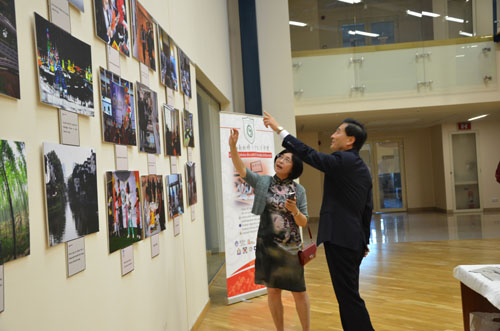 孔院中方院长薛小建向韩国大使朴孝成(右)讲解图片内容