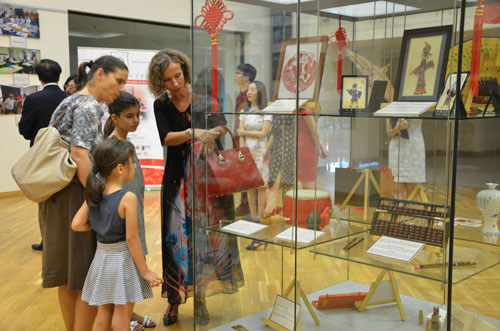 孔院在中国展厅布置了代表中国各地民俗文化和风景的图片展和各类文化物品,还有布大孔院近两年来教学与文化活动的图片展。开幕日当天,300余人来到中国展厅参观,各国使节、当地官员和当地民众对中国文化表现出极大兴趣,纷纷向孔院教师咨询各种问题。