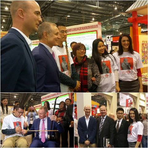 7日下午,南澳州州长Jay Weatherill先生一行来到山东馆,饶有兴致地游览了整个馆区,州长先生仔细地观看了具有中华文化特色的展品。参观期间,Jay Weatherill州长还对孔子学院教师表演的中国传统乐器二胡十分感兴趣,亲自进行了体验。