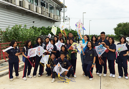 9月15日,泰国川登喜大学素攀孔子学院举办2015年“孔子学院日”系列活动之“放飞我们的‘汉语梦’”中国特色风筝体验活动,来自北碧府皇太后中学的近60名学生参加此次活动。