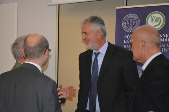 佩奇中医孔子学院在8月24号举行了孔子雕像揭幕仪式,孔子雕像作为孔子学院的符号象征引起了佩奇大学师生对孔子和中国文化的强烈关注。此次孔院邀请巴尔迪•拉斯洛先生举办关于中国文化的讲座,满足了匈牙利听众了解孔子和中国文化的渴望。巴尔迪先生从孔子的生平讲起,介绍了《论语》、《中庸》、《大学》和《孟子》等儒家经典著作,儒家思想的发展演变以及对中国社会的影响。他认为中国的“中”字不仅是地理位置的概念,更重要的是指儒家思想主张的 “中庸之道”所蕴含的意义。他认为“中庸之道”强调做事不走极端,阴阳和谐,体现了自然界的平衡。在人与人的关系上主张“己所不欲,勿施于人”,强调“和为贵”,人之间要和谐相容。