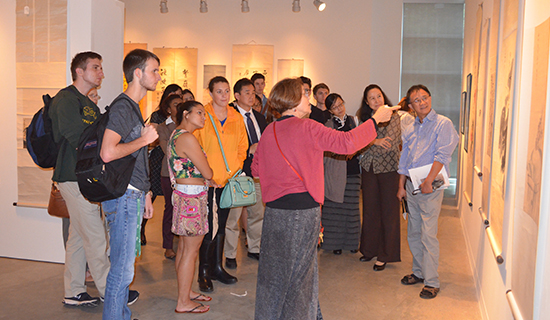 专题讨论会“中国艺术:历史、发展及鉴赏”拉开了展览序幕,孔院美方院长高青担任主持。参与讨论会的三名学者是乔治梅森大学罗宾逊首席教授Carma Hinton,教授Michael Chang和乔治敦大学历史学教授、美国国会图书馆原中文部主任王冀,他也是此次展览的展品收藏者。他们分别从中国传统书画和美学发展的历史,中国书画的鉴赏以及自己的收藏经历的角度进行了深入阐述和介绍,现场座无虚席。
