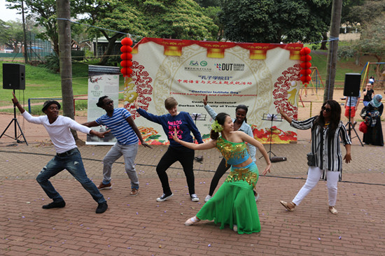 融合了传统和现代的中南特色舞蹈让在场市民目不暇接;充满中国傣族特色的民族舞蹈“雨竹林”表现了傣族少女的柔美与热情;节奏鲜明的广场舞“小苹果”和现代祖鲁舞则展现了中南青年的热情与活力。许多现场观众在中国舞蹈教师的指导下也舞起腰肢,伴随着音乐翩翩起舞。