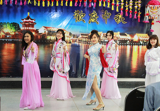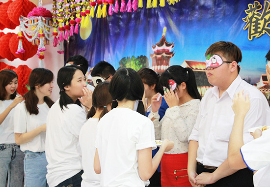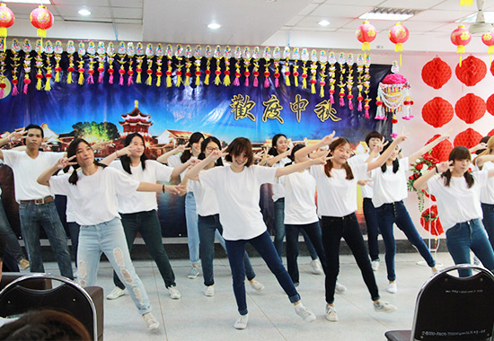 此次联欢会以“欢度中秋”为主题,联欢会在一段充满热情的《桃花朵朵开》舞蹈中拉开帷幕,学生身着汉服和旗袍,动作优美、身姿婀娜,举手投足尽显中国韵味。大二学生表演的舞蹈《gentle man》动感十足,节奏强烈,将现场气氛引至高潮。游戏环节中,志愿者教师和学生们踊跃参加。“你画我猜”,志愿者老师李明慧和学生洪涛、王惠美配合十分默契,在三分钟内猜对了全部10道题目,打败了其他两组选手,获得了当场最高奖励。