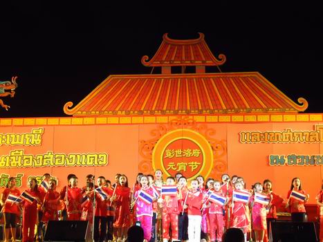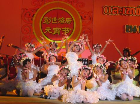 15日晚19点,2011年彭世洛府大型元宵节庆祝活动正式开始,彭世洛府府尹乃必差阁下在致词中说到:“值此中国元宵佳节之际,祝愿各位来宾在此寓意“团圆”的佳节,家庭和睦、幸福团圆。希望以后我们庆祝元宵节就像庆祝我们泰国的水灯节、宋干节一样,成为我们彭世洛府一年一度的庆祝活动”。随后,醒民学校孔子课堂的汉语志愿者老师们,倾情演唱开场曲目《恭喜恭喜》,将晚会立时引入喜气欢庆的节日气氛。此外,醒民学校的120名小演员在16日庆祝晚会上的精彩表现赢得了在场观众的一致好评。《亲亲茉莉花》热闹欢畅,《欢乐中国年》红火吉祥,《太极扇》意蕴悠远、童声合唱《大中国》激情高亢。整场演出,品目繁多,百花齐放、异彩纷呈。此次活动不光有彭世洛府本地的演员积极参与,还特邀请了自中国远道而来的表演团前来助兴,表演了极具中国特色的川剧变脸,功夫太极,中国民歌演唱、中国民乐联奏等20多个节目。为彭府民众上演了一场中国传统文化饕餮大餐。