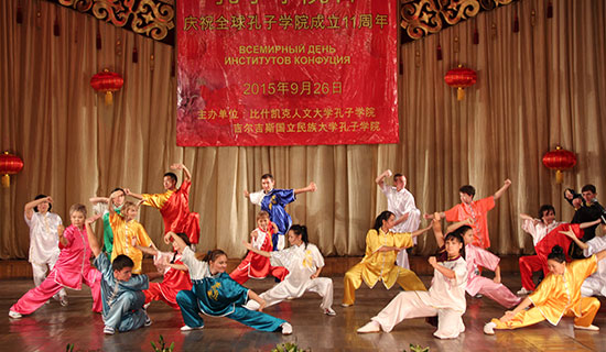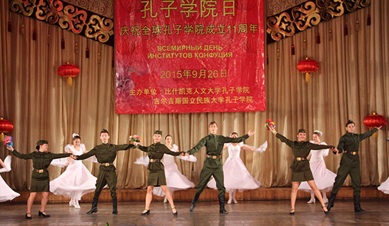 9月26日,吉尔吉斯斯坦比什凯克人文大学孔子学院举办了以“理解与和平”为主题的活动,以纪念中国抗日战争胜利暨世界反法西斯战争胜利70周年,并庆祝“孔子学院日”。此次活动分为文艺汇演和文化展示两部分,分别在比什凯克少年宫和吉尔吉斯斯坦历史博物馆举行。