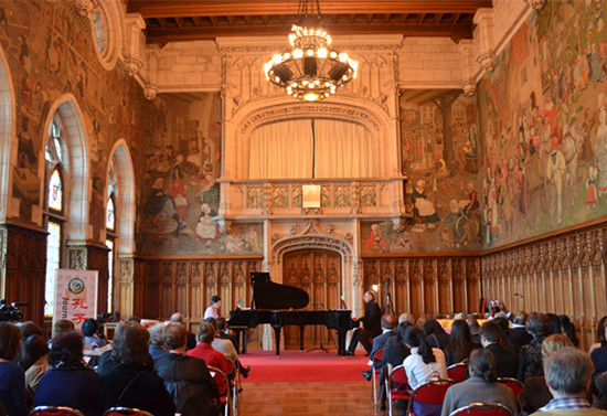 当地时间9月26日,为庆祝第二届“全球孔子学院日”,由法国阿尔多瓦孔子学院与阿拉斯(Arras)市政府合作举办的“禅”主题音乐会在Arras市政厅钟楼(Le beffroi d'Arras)节日大厅举行。