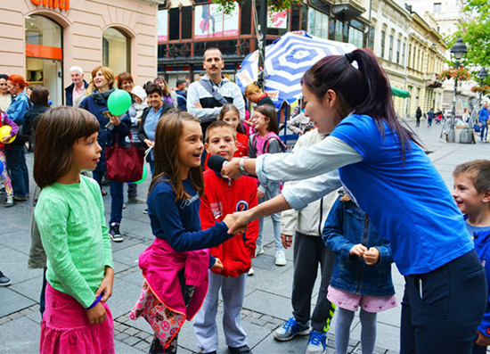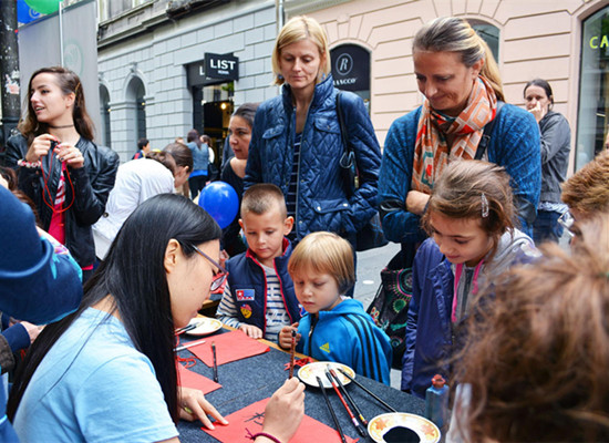 当地时间9月26日,为庆祝“全球孔子学院日”,塞尔维亚贝尔格莱德孔子学院举办“中国文化体验”活动。孔子学院全体老师和志愿者一同走进塞尔维亚民众生活,以精彩的文化活动表演和丰富的文化体验互动,使当地民众近距离接触中国文化。