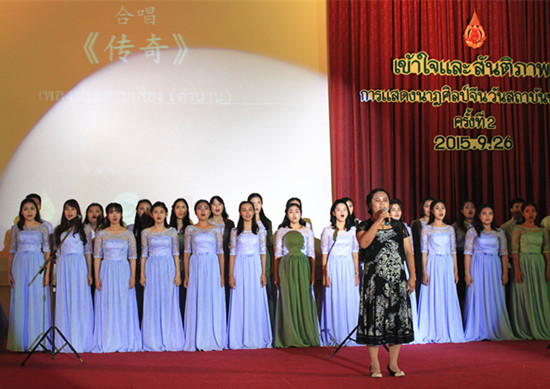 功夫表演和太极剑《道法自然》则刚柔相济地展现出中国武术的博大精深,赢得观众阵阵尖叫。黄梅戏《访英台》、合唱《传奇》、泰文歌曲串烧则掀起了整场晚会的高潮,伴着熟悉的旋律,现场观众们随着音乐一起摇摆。《传奇》的领唱,一名传奇般的大一学生张若兰,双目失明,用自己的坚强和对汉语学习的渴望,赢得了所有人的鼓励和敬佩。