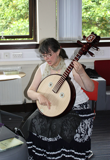 兰开夏中央大学新闻、语言与传媒学院教师艾德瓦尔多·塔西斯(Eduardo Tasis)用西班牙语朗诵了自己创作的多首情诗,展示了人生中无处不在的微妙诗意;天野贵子老师(Takako Amano)用日语诵读日本著名俳句家松尾芭蕉的经典诗作,诠释了人与自然固有的情感联系;专门从事聋人教育研究的杨军辉博士用手语生动表演了李白名诗《静夜思》的感人剧情,寄托了对中华故土的殷切思念。当地诗人朱莉·卡兰(Julie Callan)怀抱中式乐器中阮,放声吟唱,将自己专门为此次活动创作的多首中国组诗演唱出来,给英语诗歌插上了中国音乐的翅膀。本次PACT主题茶会内容丰富,形式多样,设立了今后此类诗意的跨文化对话的新模式。