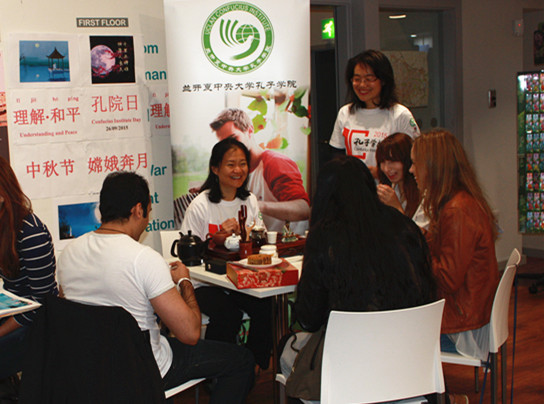 26日,孔子学院在兰开夏郡博物馆举办“喜迎孔院日、欢度中秋节”专题活动,包括月饼品尝、茶艺表演、诗歌朗诵、书法试笔、图片展示等多个项目。前来参与活动的当地人士纷纷表示自己对中国文化的极大兴趣,孔院教师也借此机会向他们介绍孔院的作为“理解·和平”理念载体的多种文化活动和语言课程。