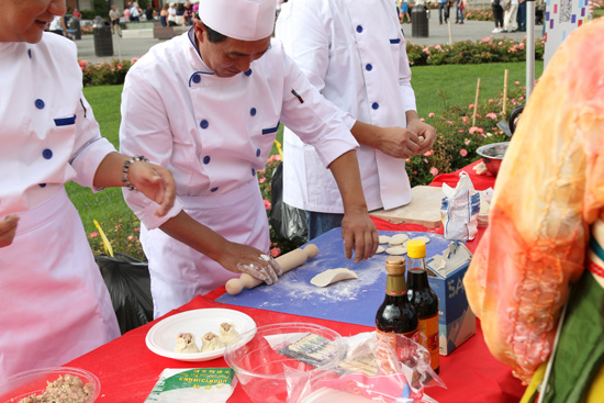 来自同济大学后勤集团的师傅们展示了中国面点的做法。水饺,烧卖,手擀面等传统小吃的制作过程让意大利朋友大开眼界。