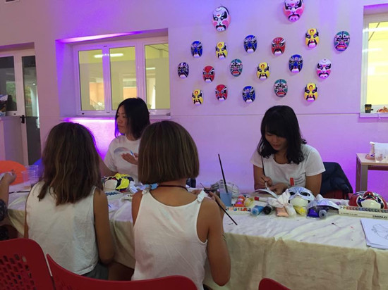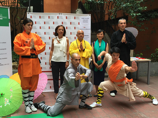 与此同时,一楼庭院的各类文化工作坊也吸引了大批市民。马德里Galatea剧社用西班牙语表演的《盘古和女娲》,用西班牙少儿喜闻乐见的方式吸引了很多小观众;少林功夫传人将武术与太极相结合的表演更给对中国功夫痴迷的观众留下了深刻印象。画脸谱深受小朋友喜爱,虽然那些脸谱之下复杂的意义他们还不能一一了解,然而就在这种潜移默化下他们接近并喜爱了中国文化。