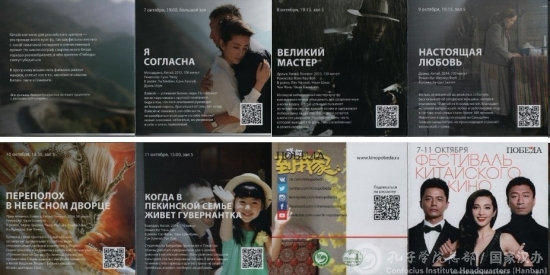 为了举办好本次电影周,孔子学院在合作影院的选择、播放影片的选取、广告宣传等方面,都做了周到的考虑和精心的准备。胜利电影院成立于上世纪三十年代,是该市规格最高的五星级电影院,在当地市民中有着非常好的口碑。而本次播放的中国电影,也是孔子学院在众多候选的影片中仔细筛选后,确定了五部能代表中国电影的思想内涵和艺术水平、反应中国社会生活且有俄语字幕的电影。在广告方面,孔子学院和胜利电影院通力合作,制作了包括视频、宣传册、大小海报在内的广告,在市内繁华商业区和主干道的大型电子屏幕上播放宣传片,在地铁、高校、商店贴广告,分发宣传册,广告覆盖全市范围,让市民们很早就了解了这个活动,对活动有所期待。