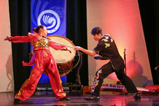 首秀于9月25日中午在达德学院Wolfson校区大礼堂上演。演出以中国民歌联奏拉开帷幕,来自汉文化发源地江苏徐州的演员们着汉服、奏汉乐,通过孔子诗朗诵、太极拳、武术、吟唱等形式带领观众认识了中国著名历史人物、重温了中国历史长河中的经典故事,以艺术手段帮助他们了解中国传统文化中的精髓要义,内容包括高山流水、大风歌、斩蛇起义、阳关三叠、鸿门宴等等。独具民族特色的表演让观众大饱眼福,精彩的武术展示更是令美国大学生们惊羡不已,他们在互动环节中纷纷登上舞台现场“拜师学艺”,并与两位武术演员一对一“对练”。现场掌声、喝彩声此起彼伏,精彩纷呈!演出在中国传统乐器演奏的美国民歌的欢快旋律中结束。观众朋友们赞叹不已,大呼过瘾。