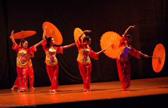 当地时间10月3日,为庆祝中国成立66周年暨孔子学院成立11周年,中国驻秘鲁大使馆、孔子学院拉丁美洲中心、秘鲁里卡多·帕尔玛大学孔子学院和秘鲁天主教大学孔子学院联合举办“中国:神话与传说”舞台剧,中国驻秘鲁使馆文化参赞朱晓燕、秘鲁孔子学院中外方院长及社会各界人士等近千人参加此次活动。